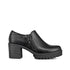 Zapatos de tacón alto en cuero negro de acabado brillante, que transmiten confianza y poder con un estilo sencillo y elegante para la mujer urbana.