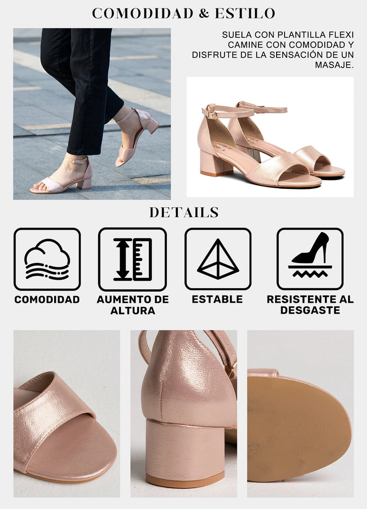 Con un cómodo taco cuadrado y una punta abierta redonda, estas elegantes sandalias demuestran elegancia, estilo y comodidad. El material de acabado con purpurina y el taco cuadrado estable proporcionan un soporte seguro y de alta calidad para un uso cómodo y seguro. Elige esta sandalia y tendrás la combinación perfecta de comodidad, estilo y practicidad para convertirte en el punto culminante de tu estilo de moda.