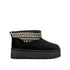 Botas de nieve con detalles de cinta étnica, combinando calidez y estilo para un look invernal acogedor y a la moda.